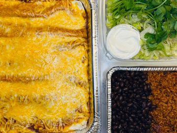 Hot: Chicken Enchiladas with Rice, Beans & Fresh Toppings